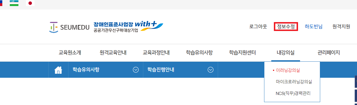 - 회원정보의 변경은 내강의실 나의정보관리탭 또는 상단의 정보수정에서 변경이 가능합니다.