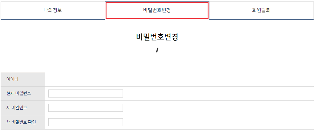 - 비밀번호 변경은 비밀번호변경탭에서 변경이 가능 합니다.